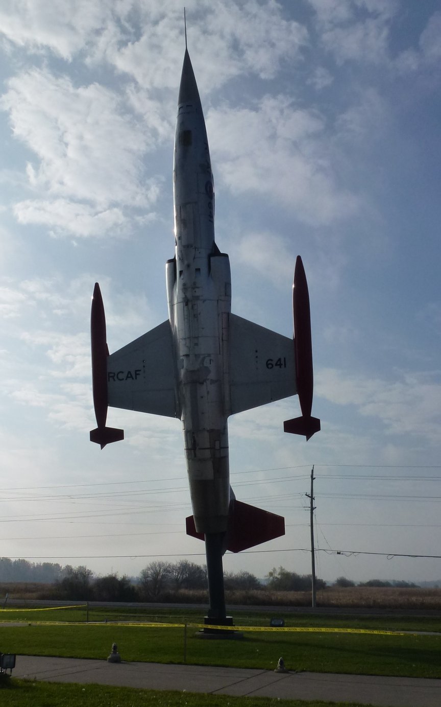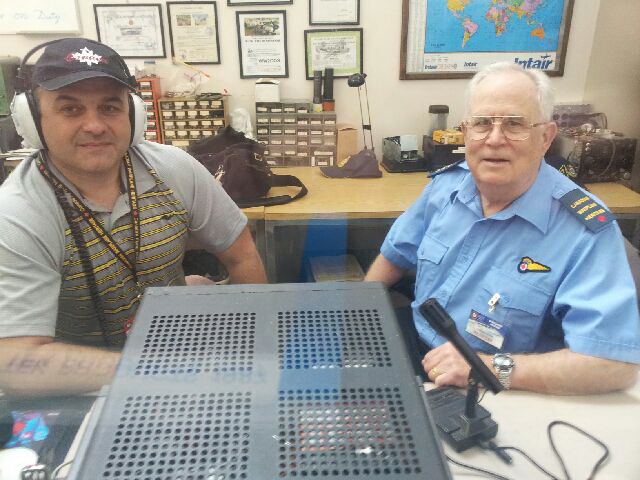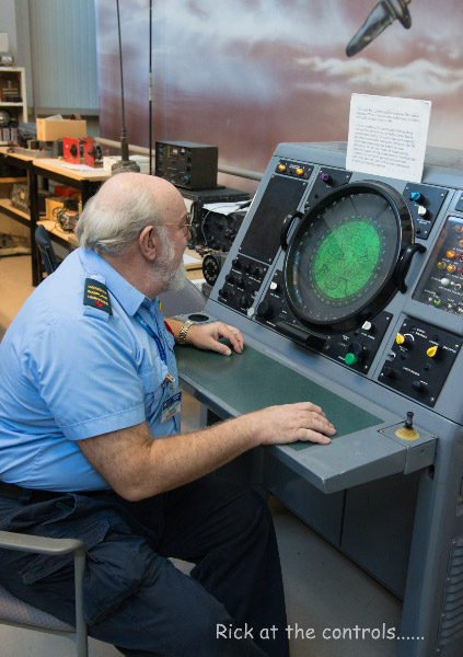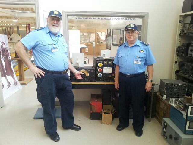 in front of original Lancaster Aircraft radio equipment.