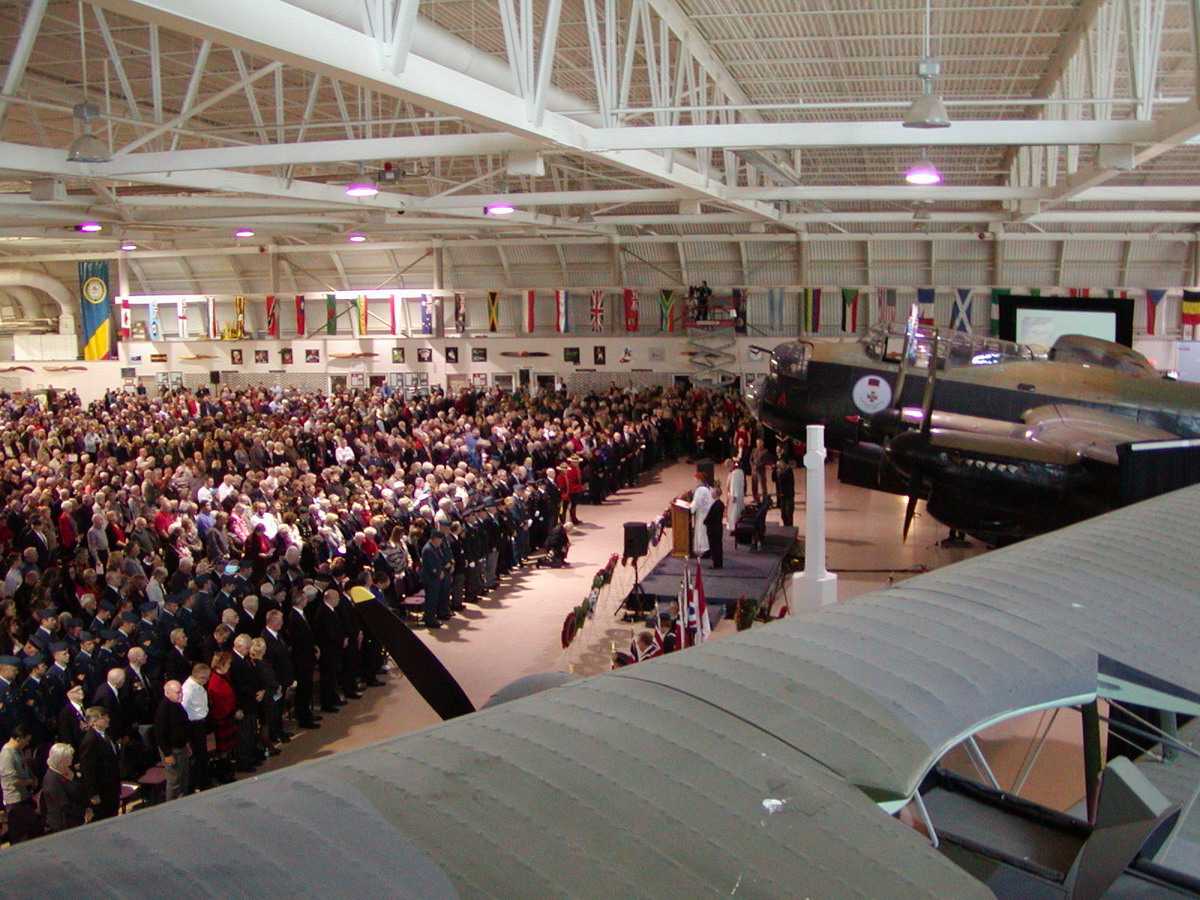 Lancaster Bomber in front of assembly.