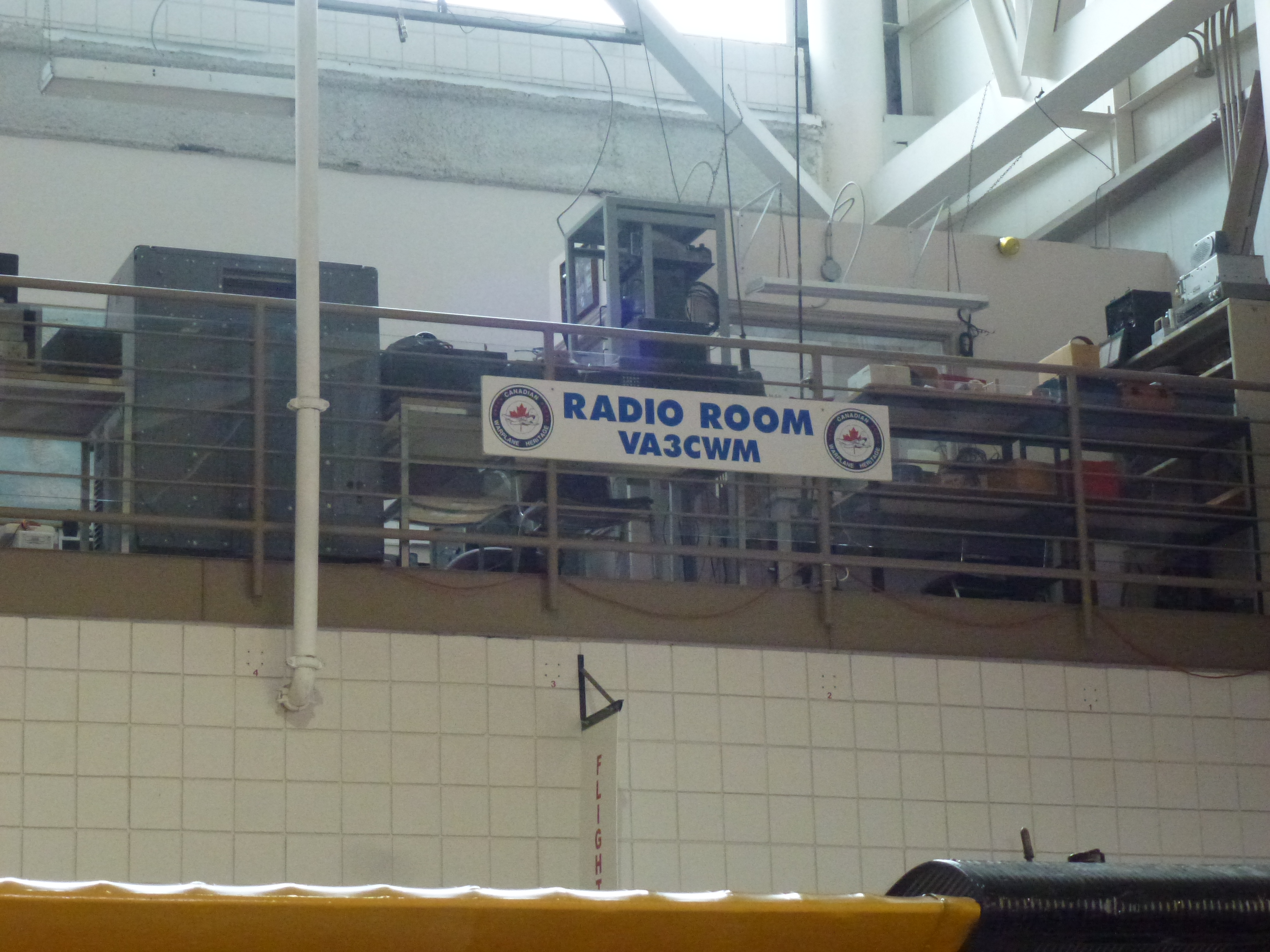 in front of original Lancaster Aircraft radio equipment.